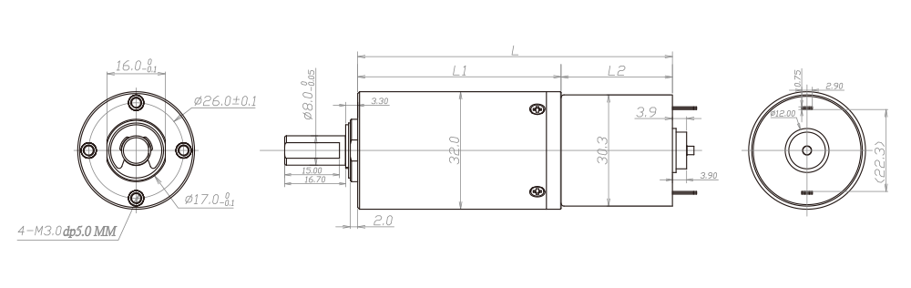 | 齿轮箱长度L1(mm) | 25.7 | 35.7 | 45.7 | 55.7 |