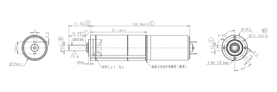 旋转方向:CW(电源正极接马达“+”,面对机壳轴伸端观察)